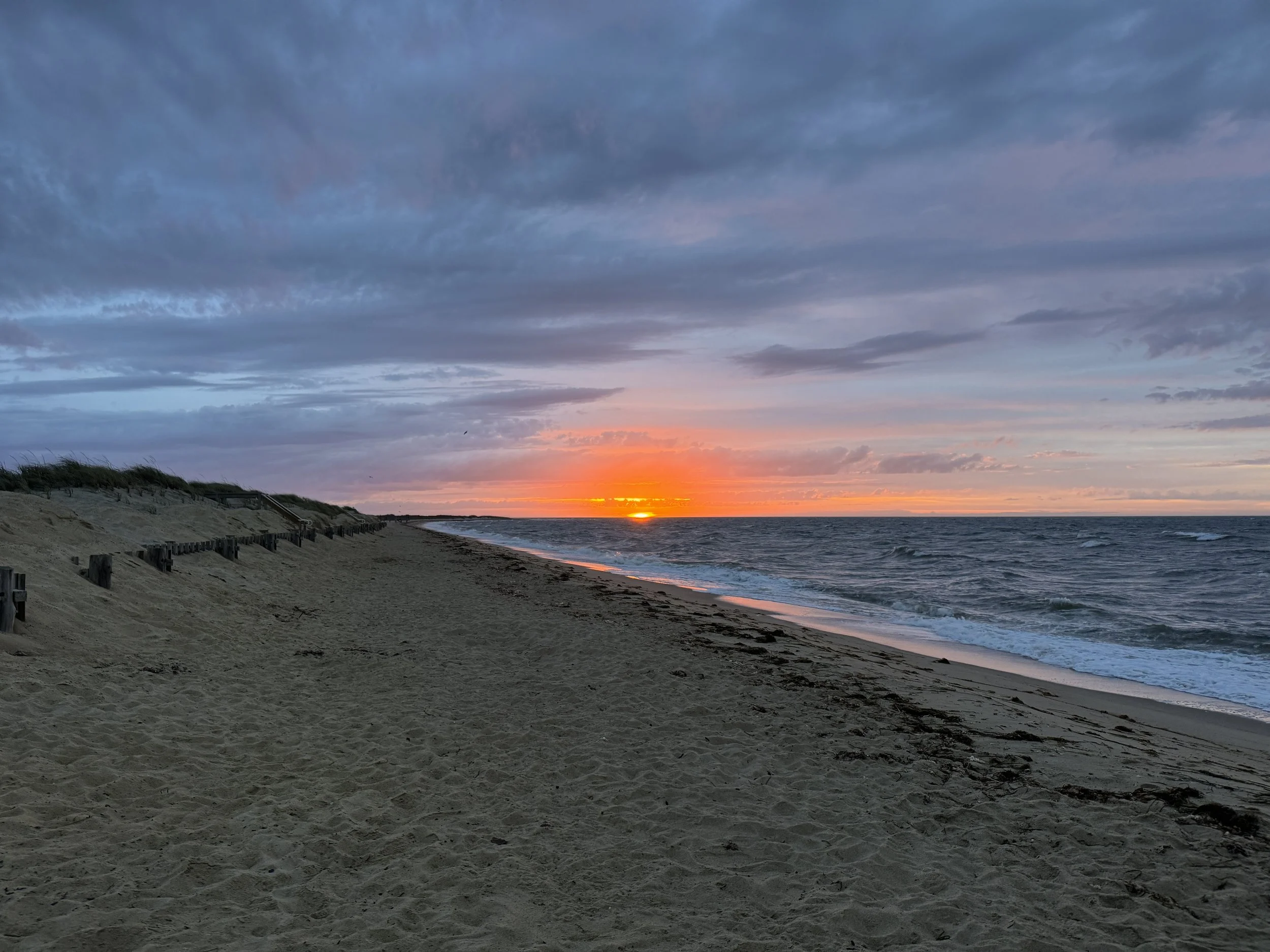 With the dark of night anticipating a new day, Vineyard Sound washed onto South Cape Beach, scattering kelp, driftwood, shells, and crab carcasses before the ocean sucked itself back, erasing its trace on the shore, leaving the sand a smooth wet canvas for the next wave. A safe distance from the encroaching tide, a sacred fire danced in the whipping wind and a promised storm. Undaunted, the flames cast a glow on faces gathered for ceremony to welcome sunrise. The gathering huddled close and warmed their fingers, casting tobacco to the embers, prayers of gratitude to the creator carried on the smoke.