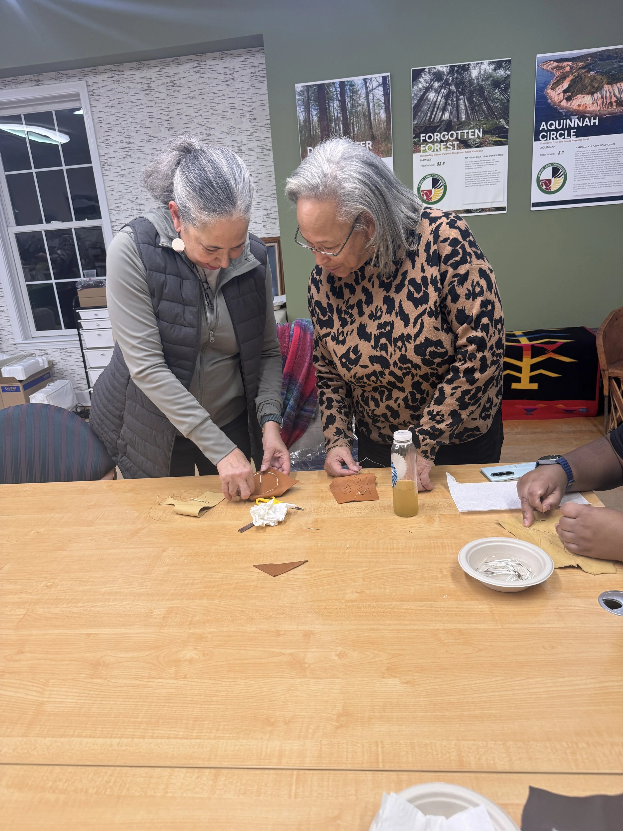 The workshop held in early March was well attended by students who were eager to learn this skill that had been practiced historically by our ancestors to decorate clothing and baskets before glass beads were made available.
